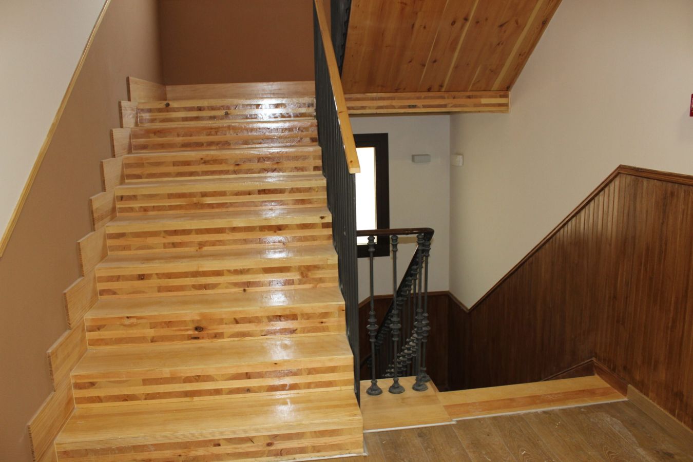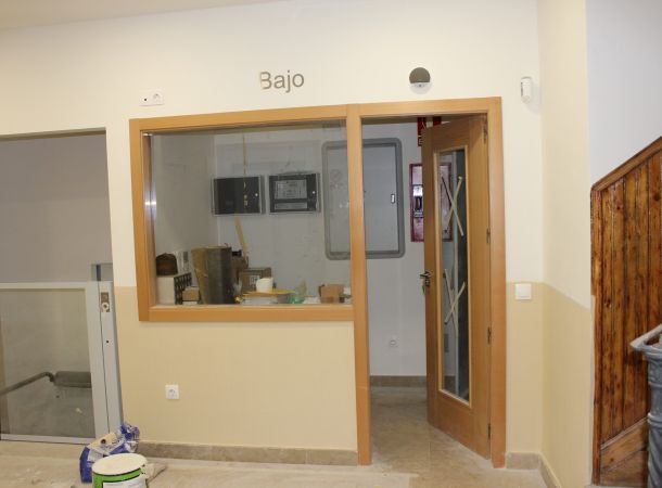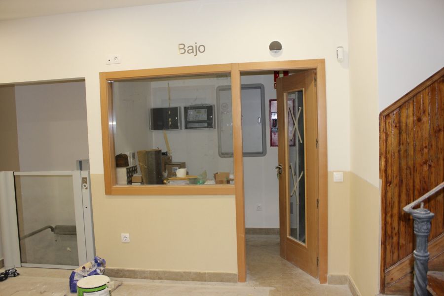Las divisiones interiores se ha realizado con tabiquería seca tipo Pladur, siendo las carpinterías interiores de madera de haya y los pavimentos de tarima flotante salvo en zonas húmedas. Las carpinterías exteriores se han realizado con aluminio con rotura térmica tanto en el edificio existente como en la parte ampliada, en el edificio existente se han fabricado fraileros de idéntico diseño a los que inicialmente tenía el edificio.