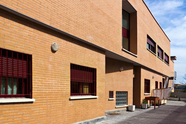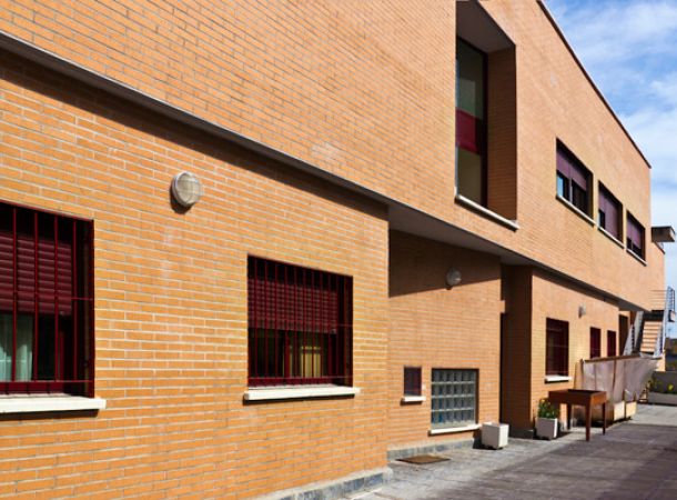 Construcción de nuevo edificio de viviendas de integración social, anexo a instalaciones existentes. Fachadas de ladrillo visto con carpintería de aluminio.