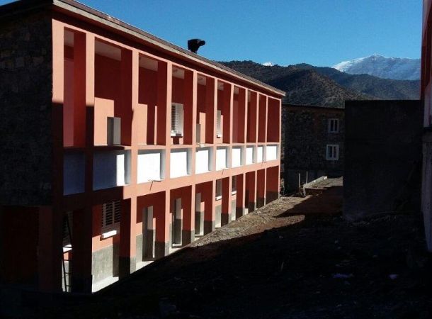 Colegio construido para el Ministerio de Educación Nacional, en el municipio rural de Zaouiat Ahansal provincia de Azila, a más de 1.600 mts de altitud, en la región de Tadla – Azilal y enmarcado en el programa de escolarización para las zonas rurales de Marruecos.