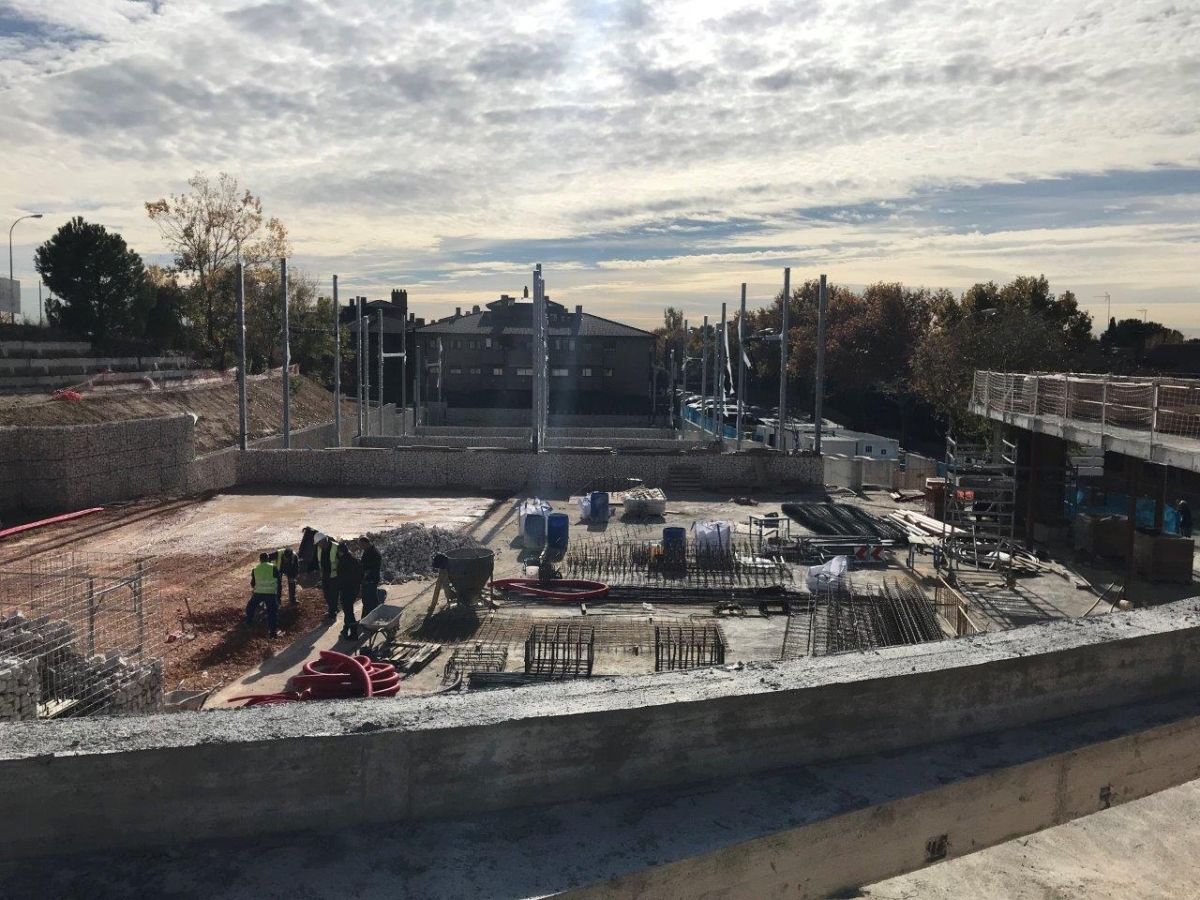 La cimentación de las pistas se ejecuta sobre firme, realizando pozos de hasta 5,00 m. de profundidad desde la cota de cimentación, y se soluciona con zapatas aisladas y vigas riostras, sobre las que se colocan las placas de anclaje de estructura metálica de pistas, entre zapatas y riostras se llevan los pasatubos de instalaciones de agua y electricidad, y la instalación de saneamiento, posteriormente se ejecutará una base de zahorra compactada para apoyo de pistas de hormigón. La zona edificada se ejecutará con estructura de hormigón armado y losas, consta de vestuarios de hombres y mujeres con acabados en porcelánico, piedra natural y cafetería con acabados en porcelánico.