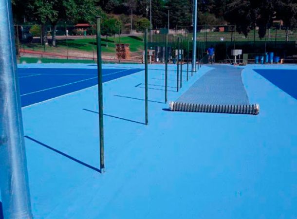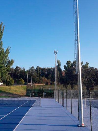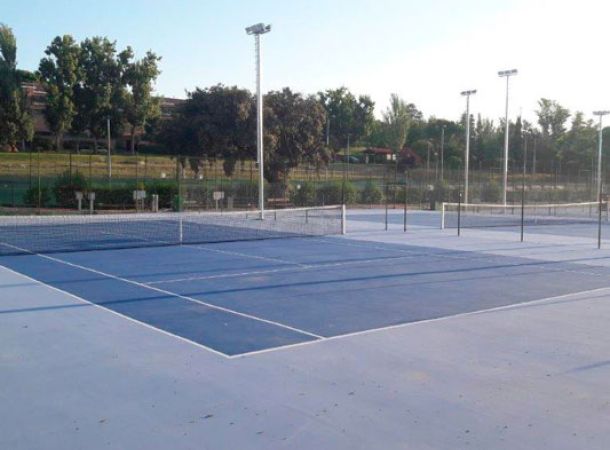 La obra consiste en la reforma de unas pistas de tenis para mejorar las instalaciones y adecuarlas a las necesidades actuales para conseguir unos espacios seguros y adaptados a la práctica deportiva. Durante la obra, se han instalado canaletas en los bordes exteriores para la recogida de pluviales y formación de solera de hormigón semipulido, con caída desde la divisoria de cada pareja hacia las canaletas.