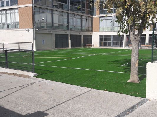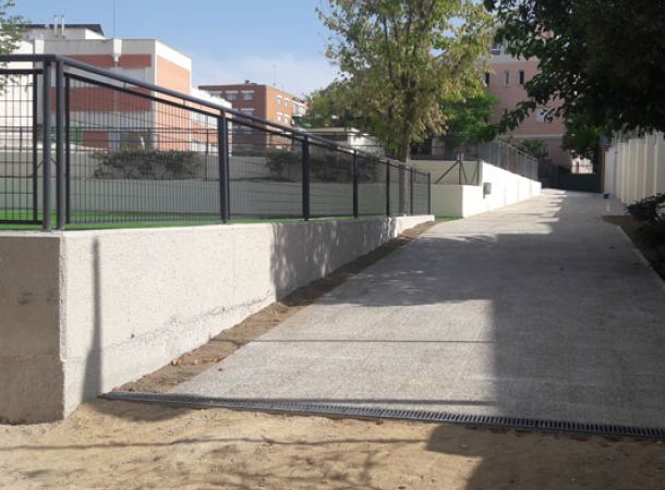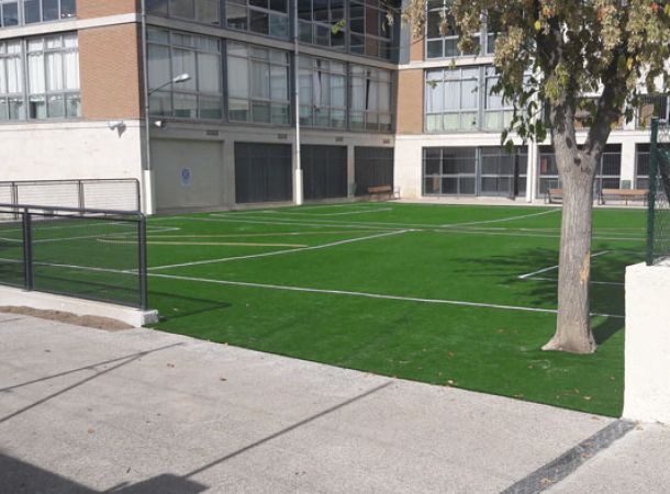 La reforma de este centro educativo ha consistido en, por una parte, rehabilitar el patio exterior con una obra centrada en la adecuación de espacios y la construcción de un campo deportivo con césped artificial. Por otro lado, se ha realizado una reforma en las aulas con el objetivo de favorecer la innovación y crear un entorno más confortable para alumnos y profesores. Durante esta obra, se reforma la estructura metálica y la cimentación para eliminar los pilares en las aulas, a la vez que se reforman integralmente las aulas con cambio de instalaciones y carpinterías.