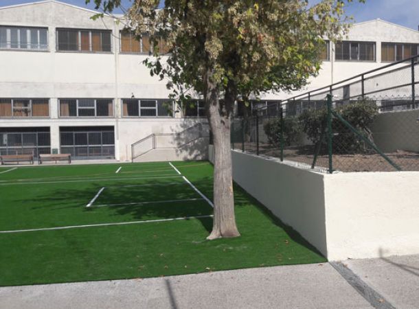 La reforma de este centro educativo ha consistido en, por una parte, rehabilitar el patio exterior con una obra centrada en la adecuación de espacios y la construcción de un campo deportivo con césped artificial. Por otro lado, se ha realizado una reforma en las aulas con el objetivo de favorecer la innovación y crear un entorno más confortable para alumnos y profesores. Durante esta obra, se reforma la estructura metálica y la cimentación para eliminar los pilares en las aulas, a la vez que se reforman integralmente las aulas con cambio de instalaciones y carpinterías.