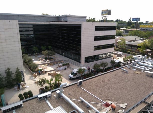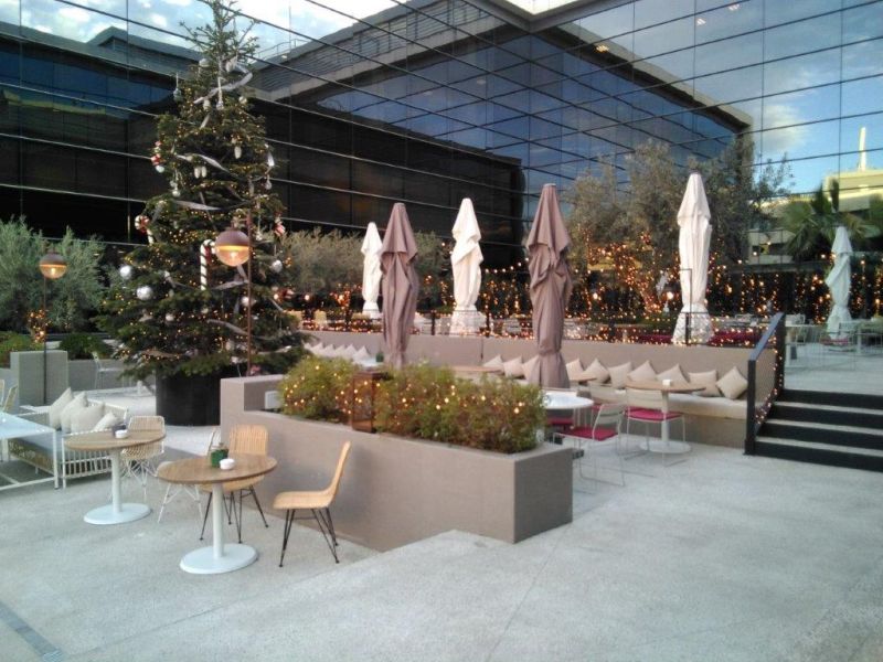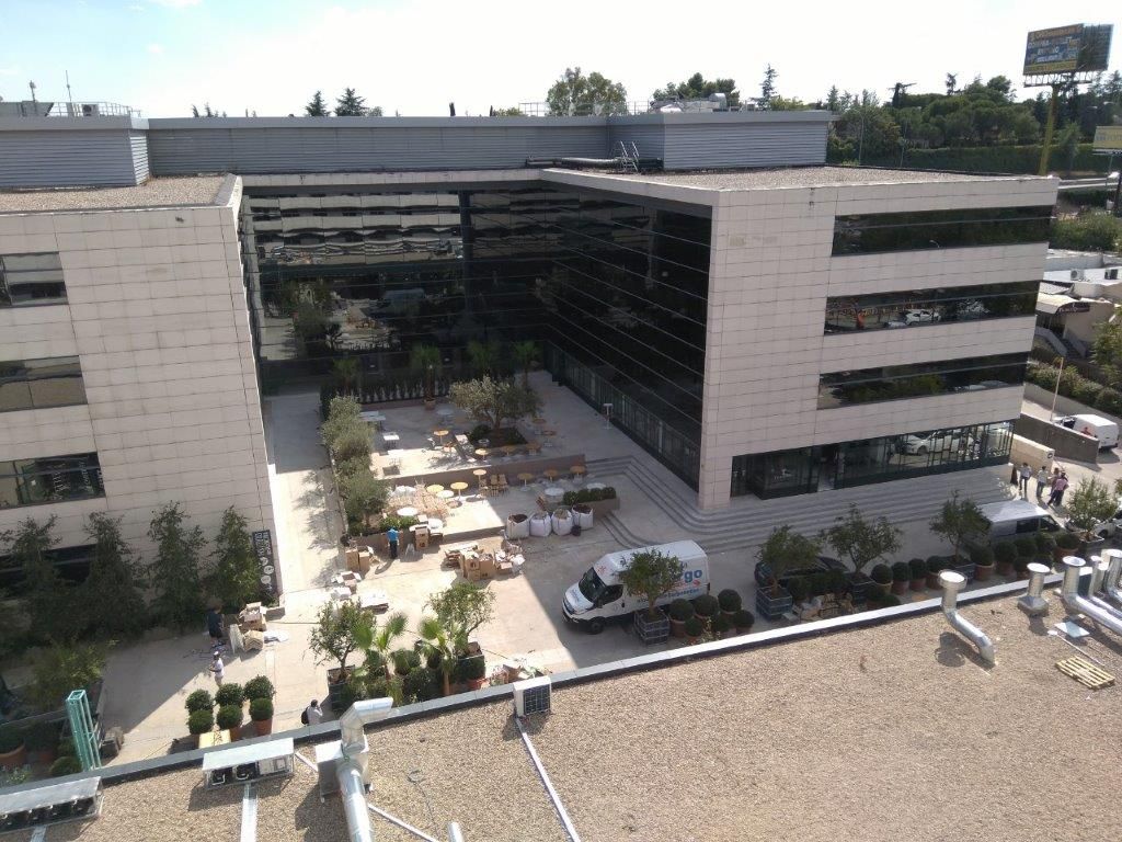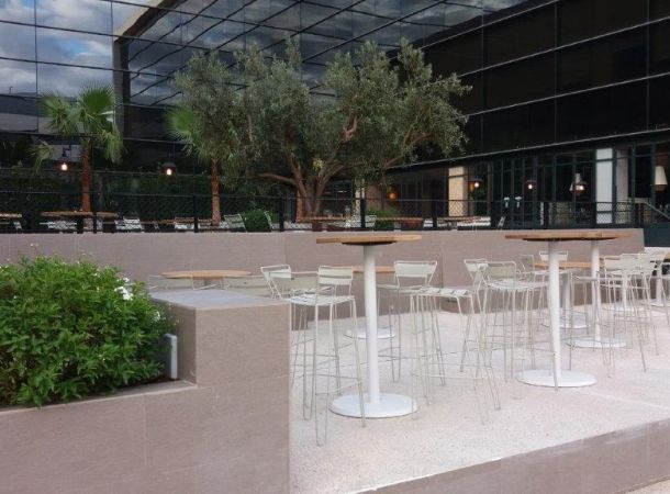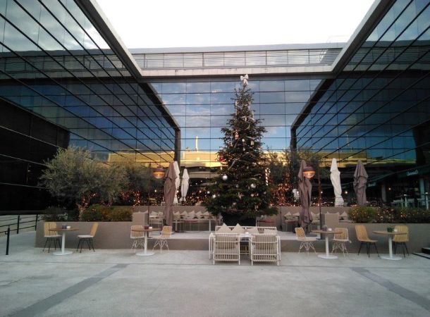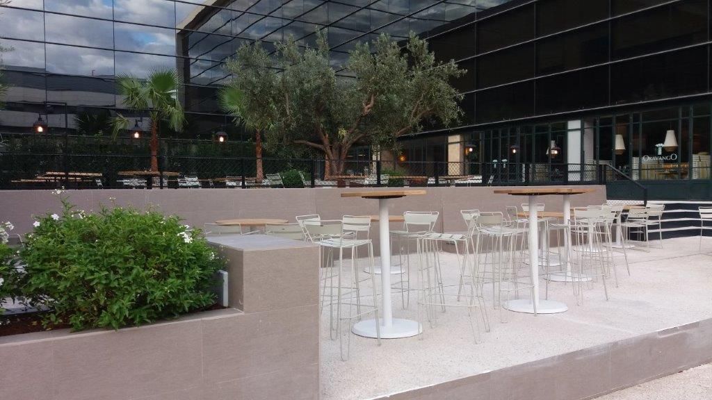 En el complejo, que ocupa los bajos del Hotel Aravaca Village y parte del edificio de oficinas colindante junto a la autovía A6, se reparten los 7 restaurantes y, entre ellos, se ha realizado un gran despliegue de jardines, bancadas, espacios para espectáculos, rampas de acceso, escalinatas, pasarelas de madera, e iluminación a medida para crear un ambiente idílico y relajante. Los trabajos realizados por Brillas Agustí para la rehabilitación de locales comerciales, en este apartado, han sido la reestructuración de toda la parcela incluyendo demoliciones, reconstrucciones, renovación de toda la red de iluminación de exterior, red de fuerza y datos, regadío para jardineras y macetas, evacuación de aguas, impermeabilizaciones, cerrajerías, pintura, etc.