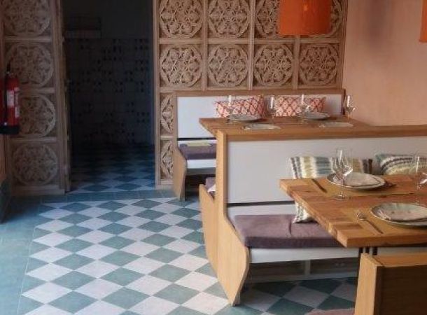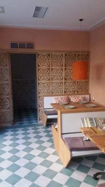 Aquí encontramos el restaurante “Bengala”. Restaurante indio que tiene acceso desde el patio interior del hotel o desde la fachada lateral del mismo. Este local cuenta, en especial, con grandes trabajos de artesanía en cerrajería y carpintería como se puede ver en la terraza interior con arcos y celosías de acero, o en el artesonado envejecido de la barra o la pared exterior de los baños. Los suelos de diseño clásico, el estucado de las paredes y las hornacinas rústicas dan un aire cálido y hogareño al interior. La rehabilitación de locales comerciales puede realizarse con una temática concreta para crear un ambiente único e innovador.