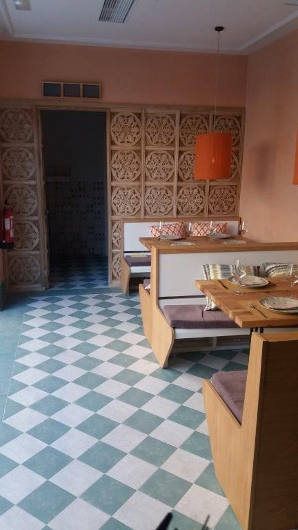 Aquí encontramos el restaurante “Bengala”. Restaurante indio que tiene acceso desde el patio interior del hotel o desde la fachada lateral del mismo. Este local cuenta, en especial, con grandes trabajos de artesanía en cerrajería y carpintería como se puede ver en la terraza interior con arcos y celosías de acero, o en el artesonado envejecido de la barra o la pared exterior de los baños. Los suelos de diseño clásico, el estucado de las paredes y las hornacinas rústicas dan un aire cálido y hogareño al interior. La rehabilitación de locales comerciales puede realizarse con una temática concreta para crear un ambiente único e innovador.
