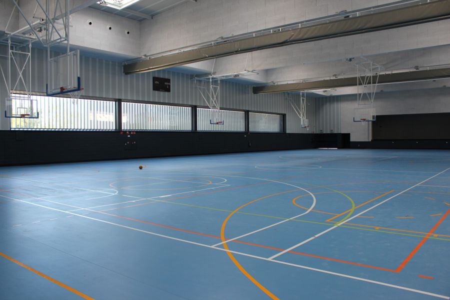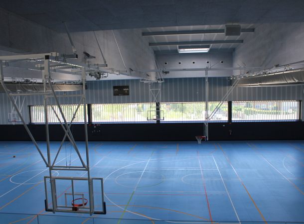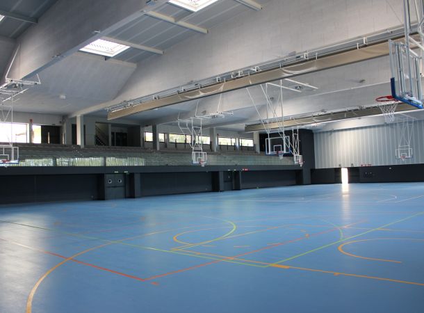 En un área de actuación de unos 4.000 m2, se realiza la construcción de un polideportivo que albergue las instalaciones deportivas cubiertas del colegio con idea de completar su oferta educativa. Se trata de una edificación con carácter racionalista y lineal, que no desentona ni hace perder la visión de los árboles y la naturaleza que lo rodea. Mediante un patio inglés damos luz a la zona trasera del polideportivo y nos deja ver las tres plantas existentes en el mismo. El edificio se adapta perfectamente a la pendiente existente en el terreno. La entrada al edificio desde el colegio se realiza por la planta superior y en la planta baja se sitúa el polideportivo, los vestuarios y un gran escenario, quedando la planta primera destinada a una zona de gradas y aseos. Por encima del nivel de acceso se alcanza el nivel superior del edificio, que sobresale del volumen principal donde se da cabida a la sala de profesores y a las aulas destinadas a extraescolares.