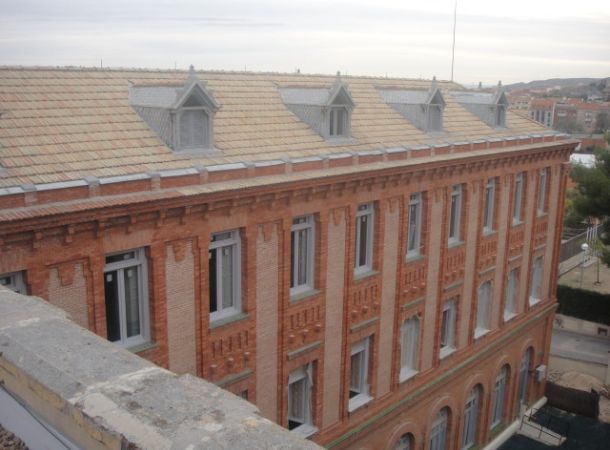 Rehabilitación de cubiertas de pizarra, teniendo que cambiar todos los canalones de zinc de la residencia.