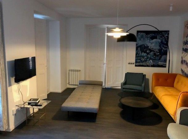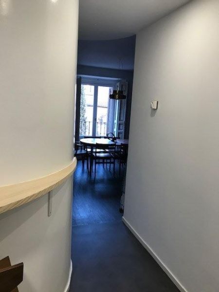 Reforma de vivienda en la Plaza del 2 de mayo, en el barrio de Malasaña. Se realiza reforma integral, se recuperan el suelo de madera existente, en el que se realiza un teñido y un barnizado para su oscurecimiento, el resto del pavimento es de microcemento. Esta vivienda estaca por su luminosidad, ya que tiene cinco balcones con vistas a una de las plazas más emblemáticas de Madrid.