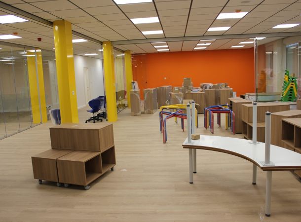 La distribución de las aulas se ha dispuesto de tal forma que, quede una zona amplia donde puedan jugar y divertirse sin ningún tipo de riesgos.