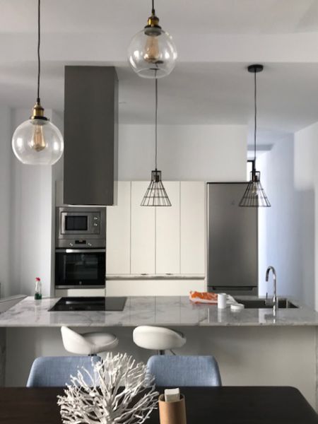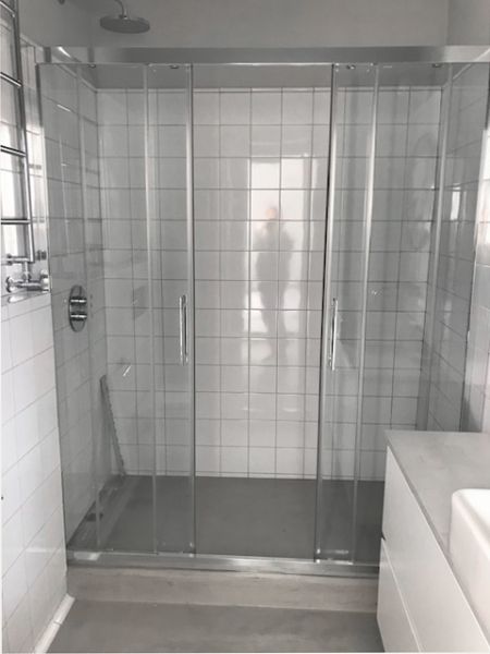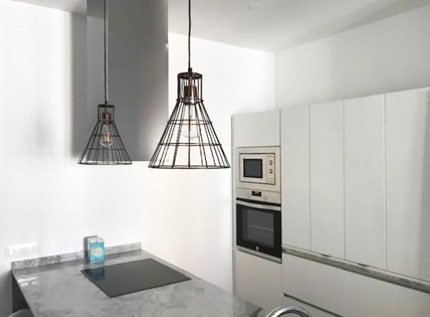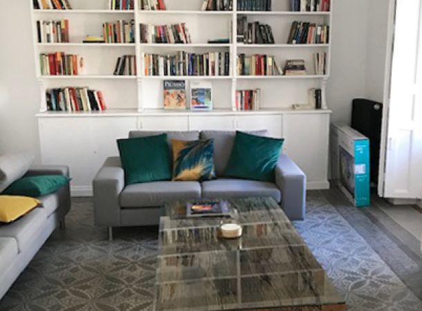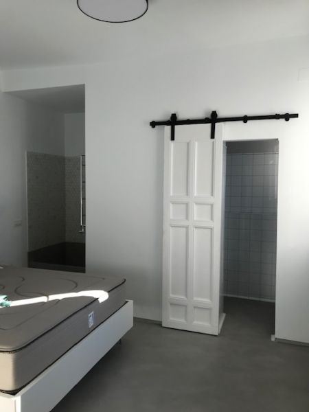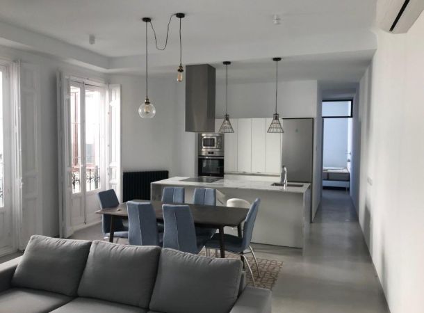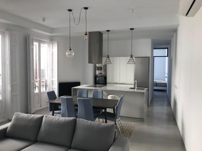 Rehabilitación integral de vivienda de 250 m2 en calle San Agustín. En este caso también hemos podido recuperar los suelos de baldosa hidráulica existentes, el resto del pavimento es de microcemento color gris, incluso la formación de bañeras y duchas. Se dota a la vivienda de caldera de gas natural y aire acondicionado.
