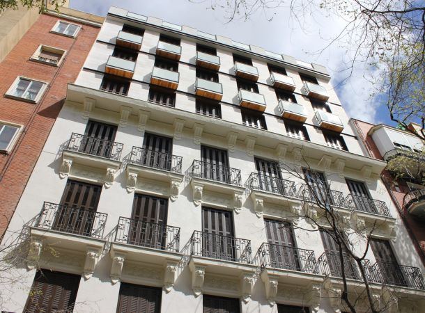 Una vez realizados los trabajos anteriormente descritos, se ha procedido a la ampliación en altura del edificio, dicha ampliación ha consistido en la ejecución de cuatro nuevas plantas, hasta alcanzar una altura total de siete plantas más un ático.