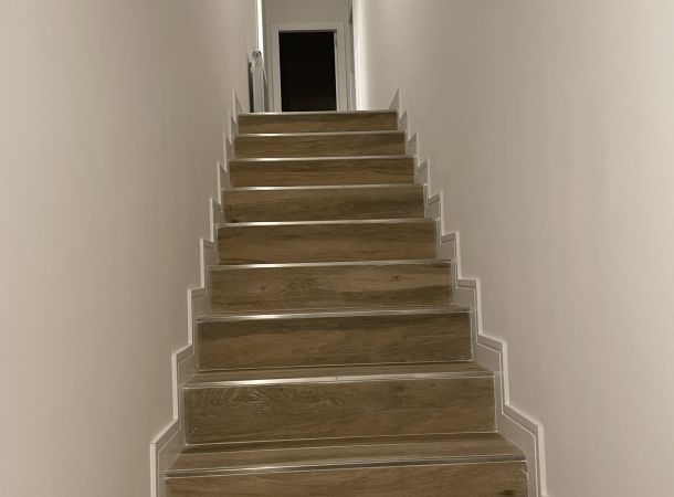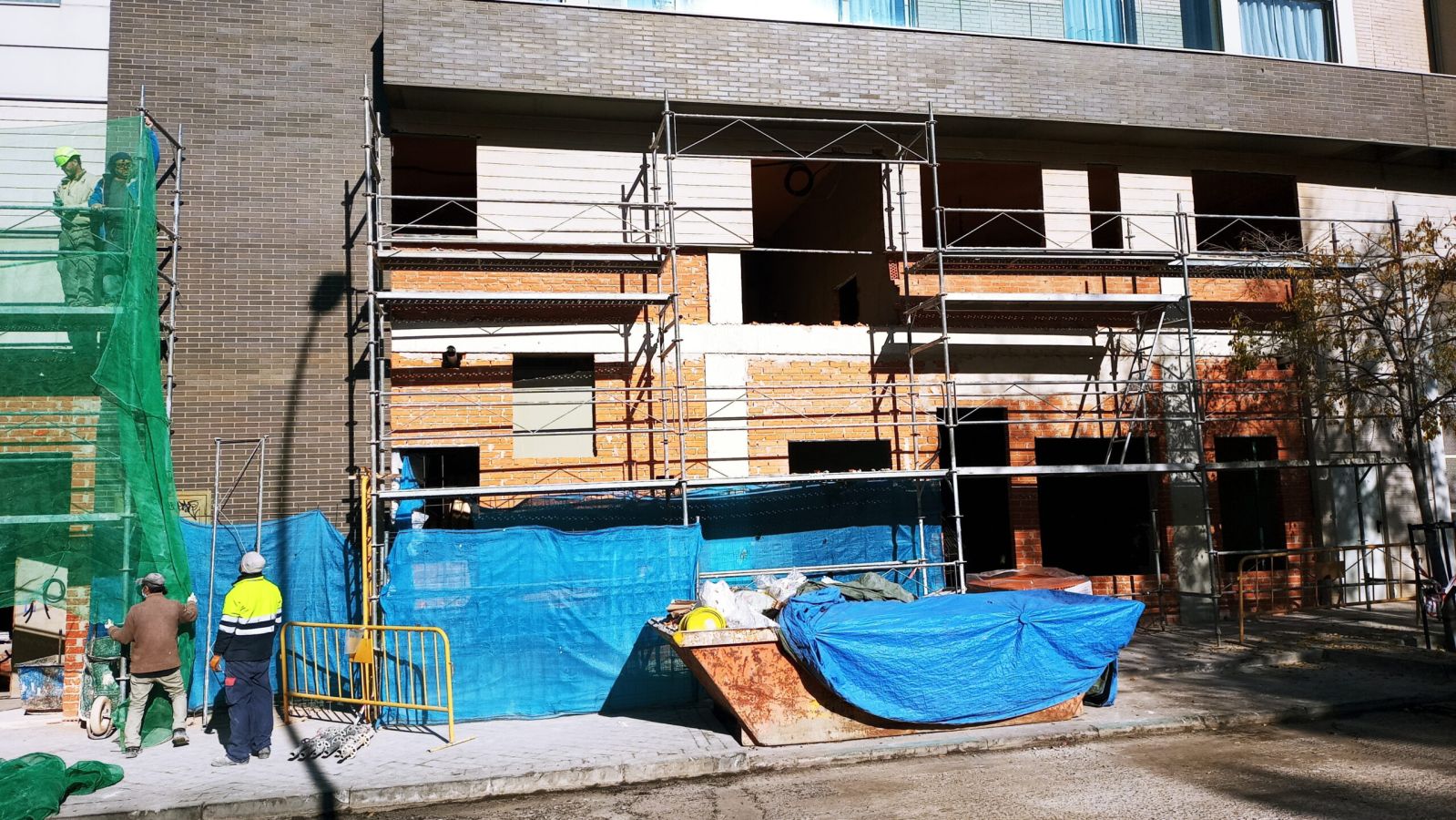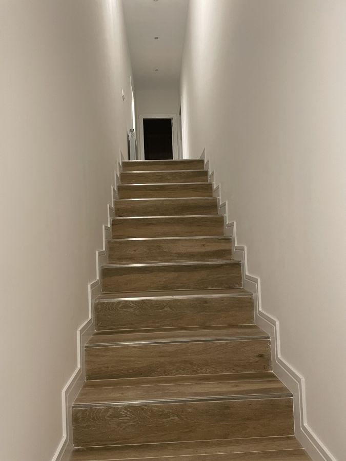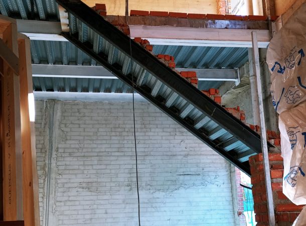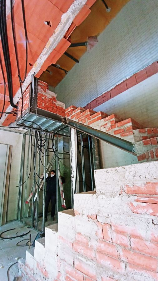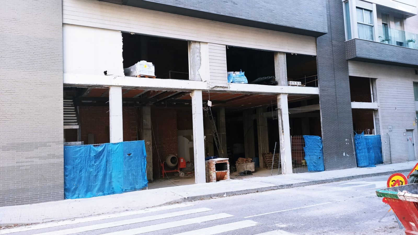La actuación de Brillas Agustí se ha centrado en la demolición y vaciado de los locales actuales, adecuando la zona de los forjados de entreplanta, ejecución de forjados nuevos y escaleras de acceso a la planta superior de cada vivienda, cerramiento de la fachada con sistema de aislamiento SATE y configuración de los espacios interiores con divisiones de pladur.